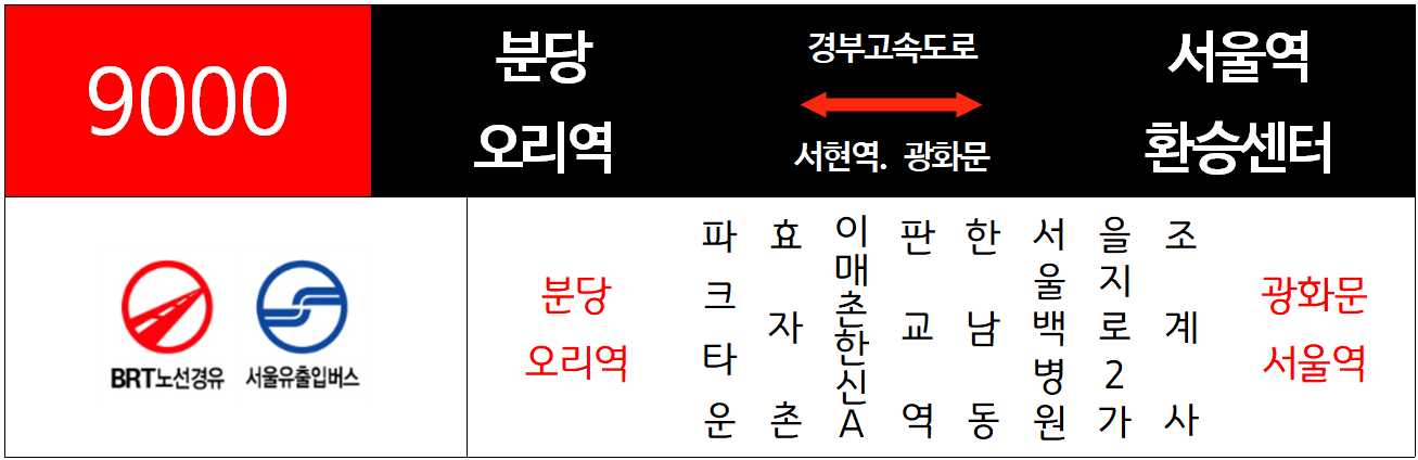 | 근무시간 한정 죽전단국대 – 오리역 – 궁내동 – 4번 9000-1 낙생고 경유