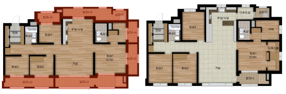 발코니를 확장해 평면도를 늘리면 거실과 방, 방과 방, 거실과 주방 사이의 내부 공간이 모호해진다. 폐차장자주 발생합니다.. 2010년대에는 아파트 계획에서 남은 공간을 효율적으로 활용하기 위해 알파룸을 도입했다. 발코니 확장에 비해 추가 요금 없이 보너스 공간이라 소비자들의 호감을 사기에 충분했다.주로 음식을 보관하는 주방수납장과 팬트리(pantry), 드레스룸, 서재, 서재, 와인바, 티테이블 등으로 활용된다. 세트.