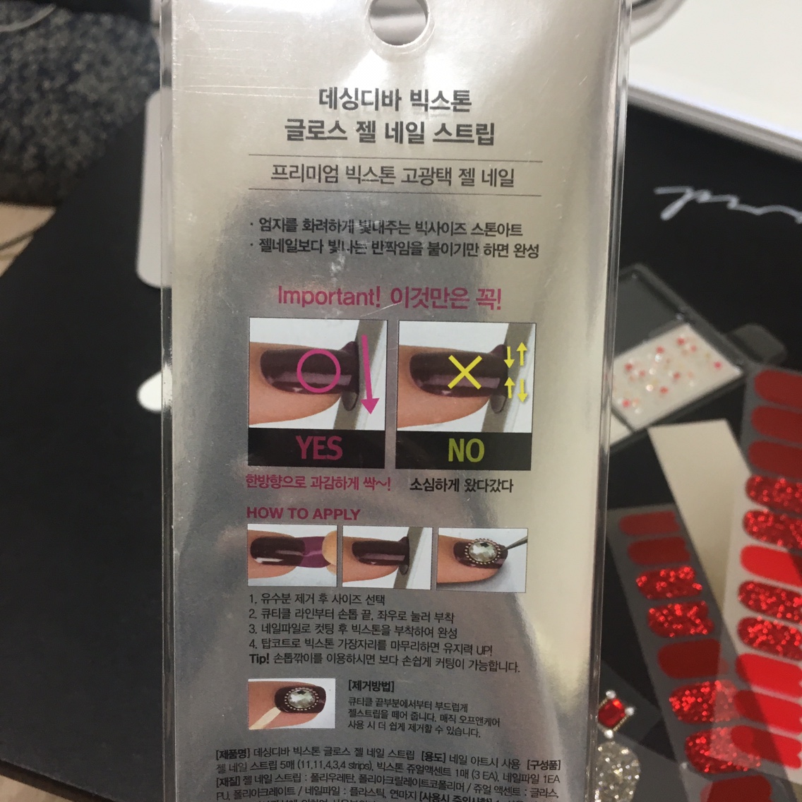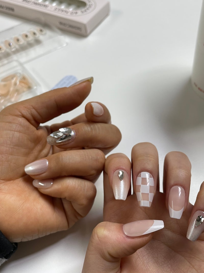 젤매니큐어이기 때문에 곰손에도 쉽게 바를 수 있어서 실패없이 예쁜 네일을 할 수 있어요! 큐티클과 손톱 길이를 먼저 정돈해 주면 더 자연스럽고 오래가며, 나란히 누르면 손톱 끝이 벌어지면서 달라붙기 때문에 큐티클의 좌우로 꾸욱 눌러주는 것을 추천한다. 펼친 느낌이 들도록 작은 사이즈로, 내장된 미니 네일 파일로 팁을 꾹꾹 눌러주세요. 끝부분만 살짝 다듬어주세요- ! 데싱디바의 젤네일은 쉽고 예쁘게 할 수 있습니다. 제거 방법은 가장자리에 홈을 낸 후 메이크업 리무버를 적신 나무 막대로 손톱을 톡톡 두드려 손상 없이 제거합니다.
