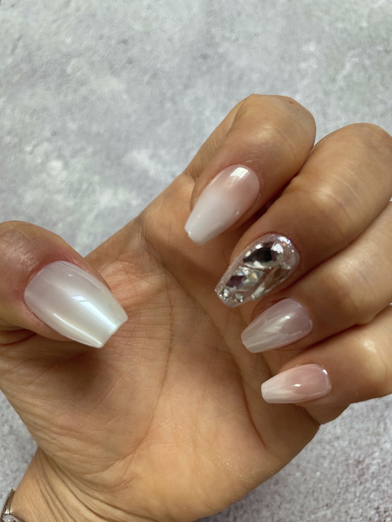 오늘은 일하는 날이라 더 차분하고 자연스럽게 예뻐졌어요! #플레이리스트 웨딩네일로 너무 좋을 것 같은데요, 너무 화사한 컬러나 디자인이 아닌 깔끔하고 자연스러운 느낌을 좋아하신다면 이 플레이리스트를 적극 추천드려요