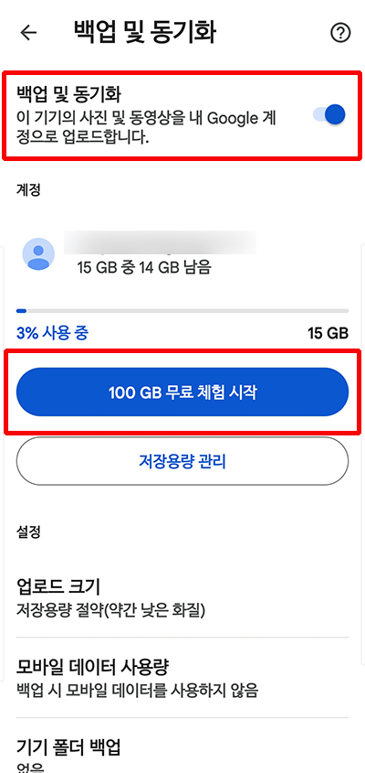 Google 포토의 백업 및 동기화 설정