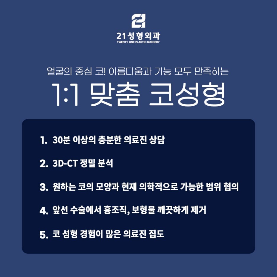 (코수술 비용) 자연스럽고 만족스러운 결과를 원하신다면 (21성형외과)