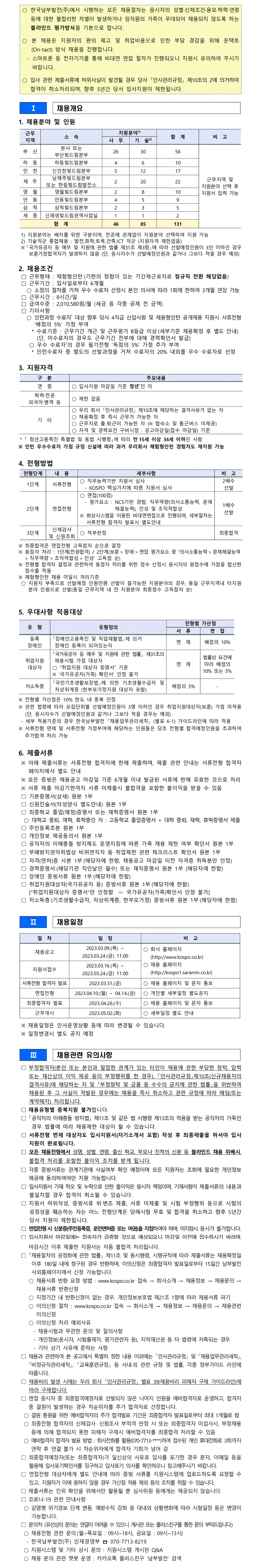 1) 모집분야 및 인원 모집인원은 총 131명으로 지원분야, 직무, 기술 중 하나를 선택하여 지원한다.